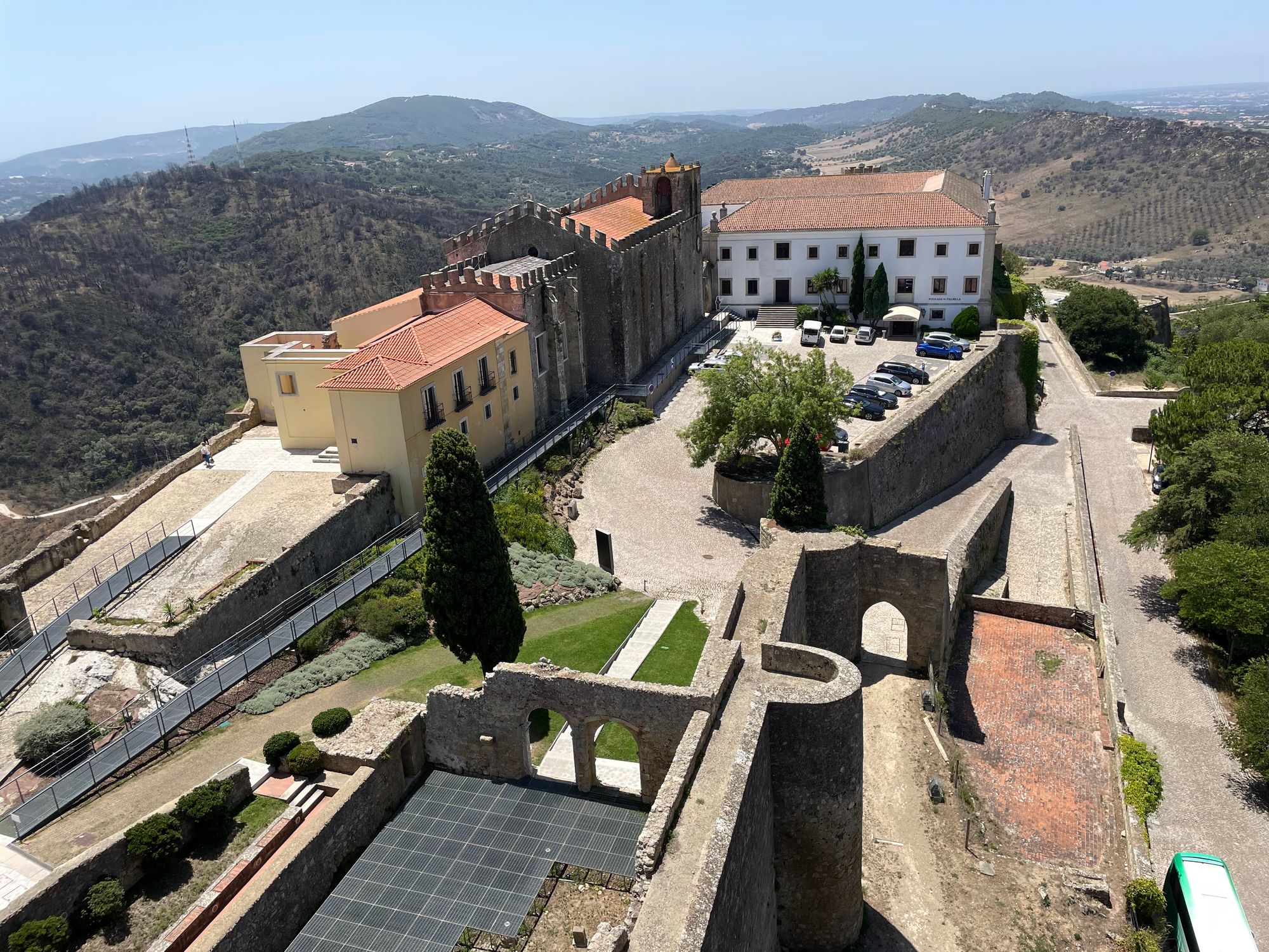 We started off week 3 looking to see what the kids wanted to do most around town. Queen bee Junie tends to win these discussions #becausethirdchild and Forte de Sao Filipe was her #1 choice. We jump in an Uber and head up only to find out it's closed. We continually forget that Monday in Portugal is a semi-weekend day. Some stuff will be open, but it's hit or miss. Our Uber driver didn't speak any English, but we were able to butcher through enough conversation to find out that she recommended Castelo de Palmela which according to google was open. The Castle of Palmela is a large piece of local history dating as far back as the 8th century. The other sight that was awe inspiring (in a scary way) was seeing the amount of hillside that was burned to a crisp near the castle. This was from a massive fire that occurred almost exactly a year ago.