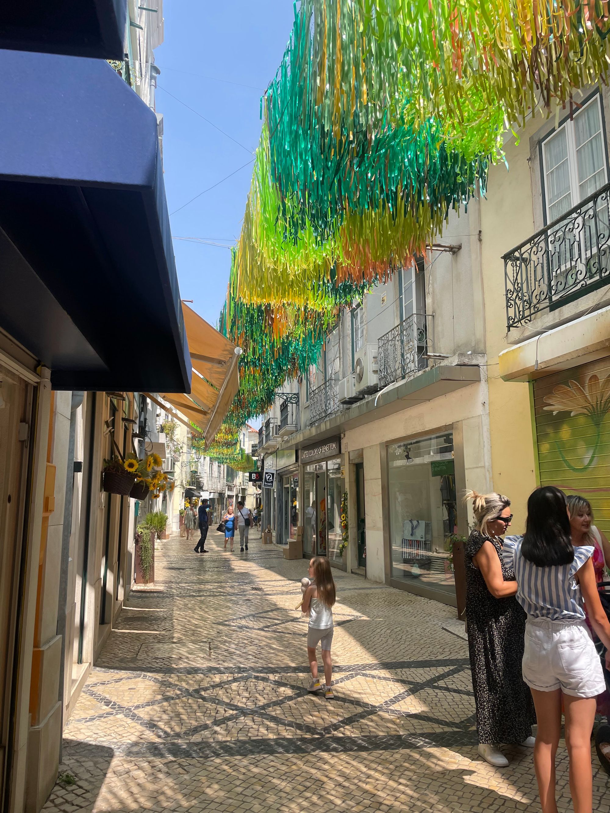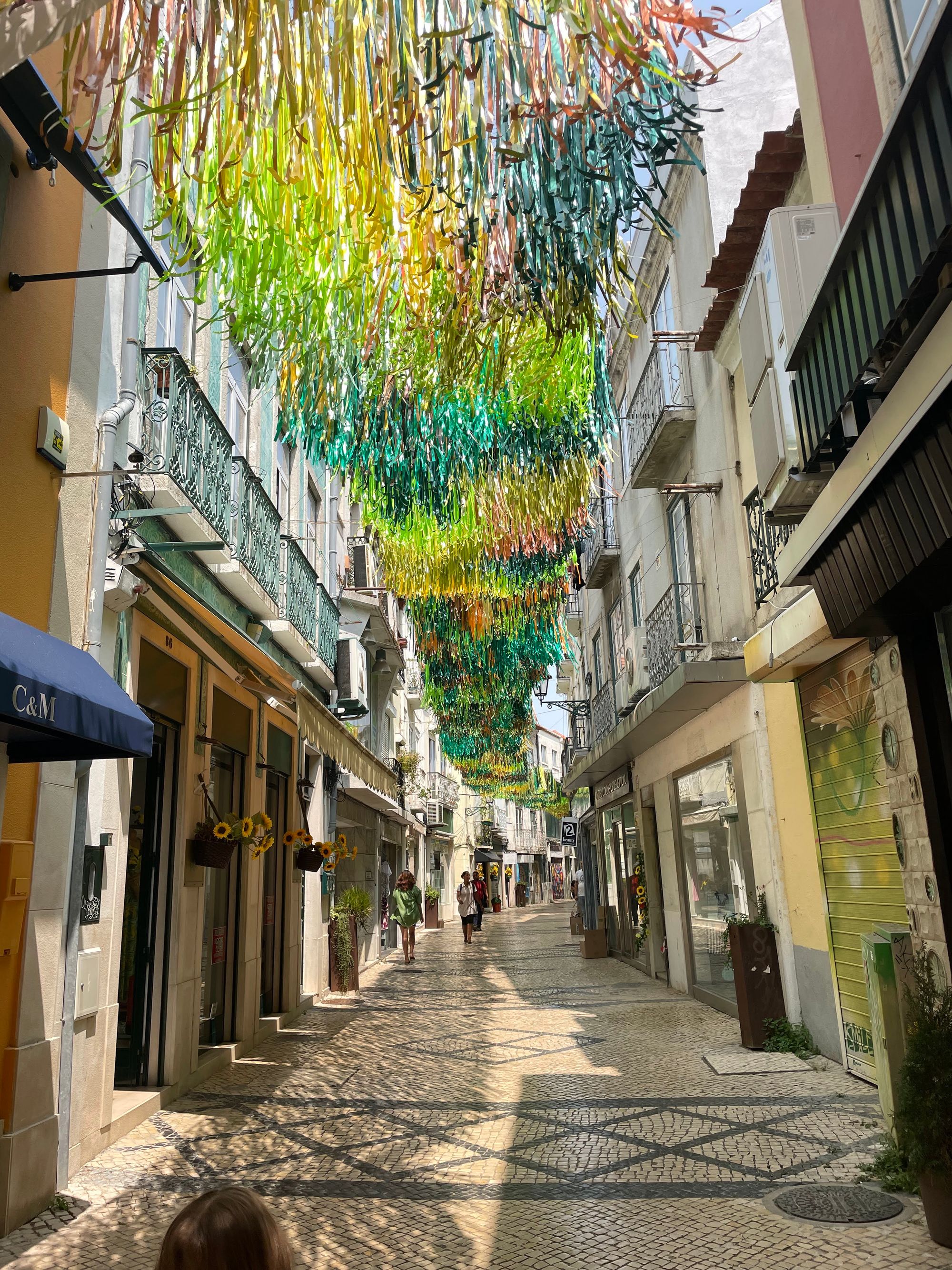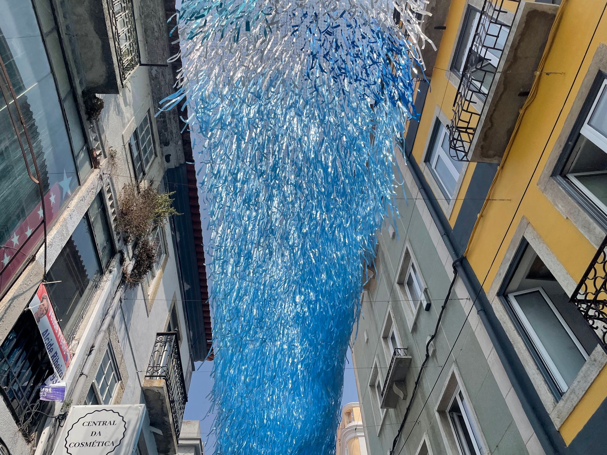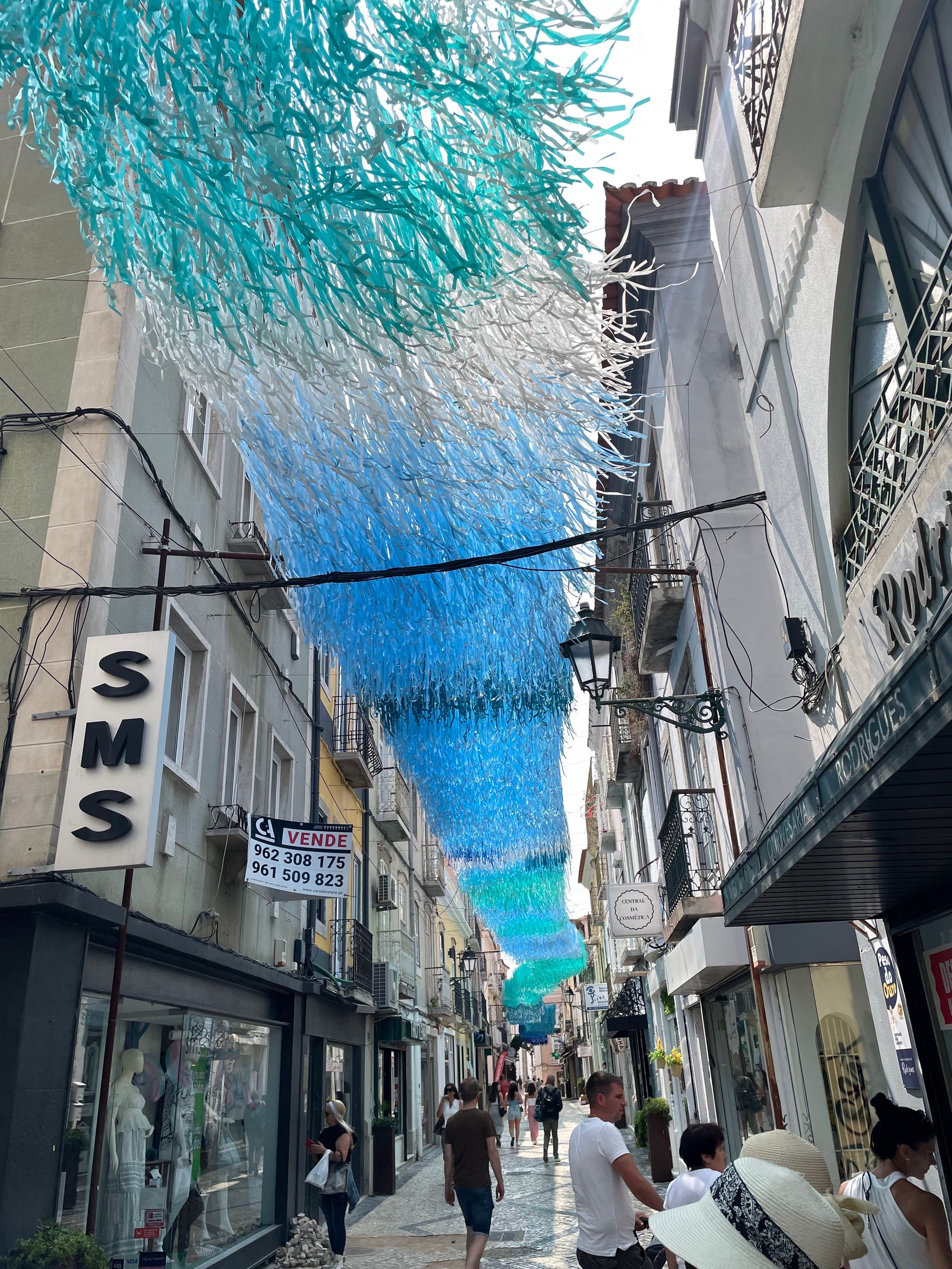 Tuesday was a lower-key day where we returned to the historic Praca de Bocage area. They commonly decorate the streets surrounding the square in one way or another during the summer months and this year doesn't disappoint. The theme appears to be streamers representing the land up one street and the ocean down another.