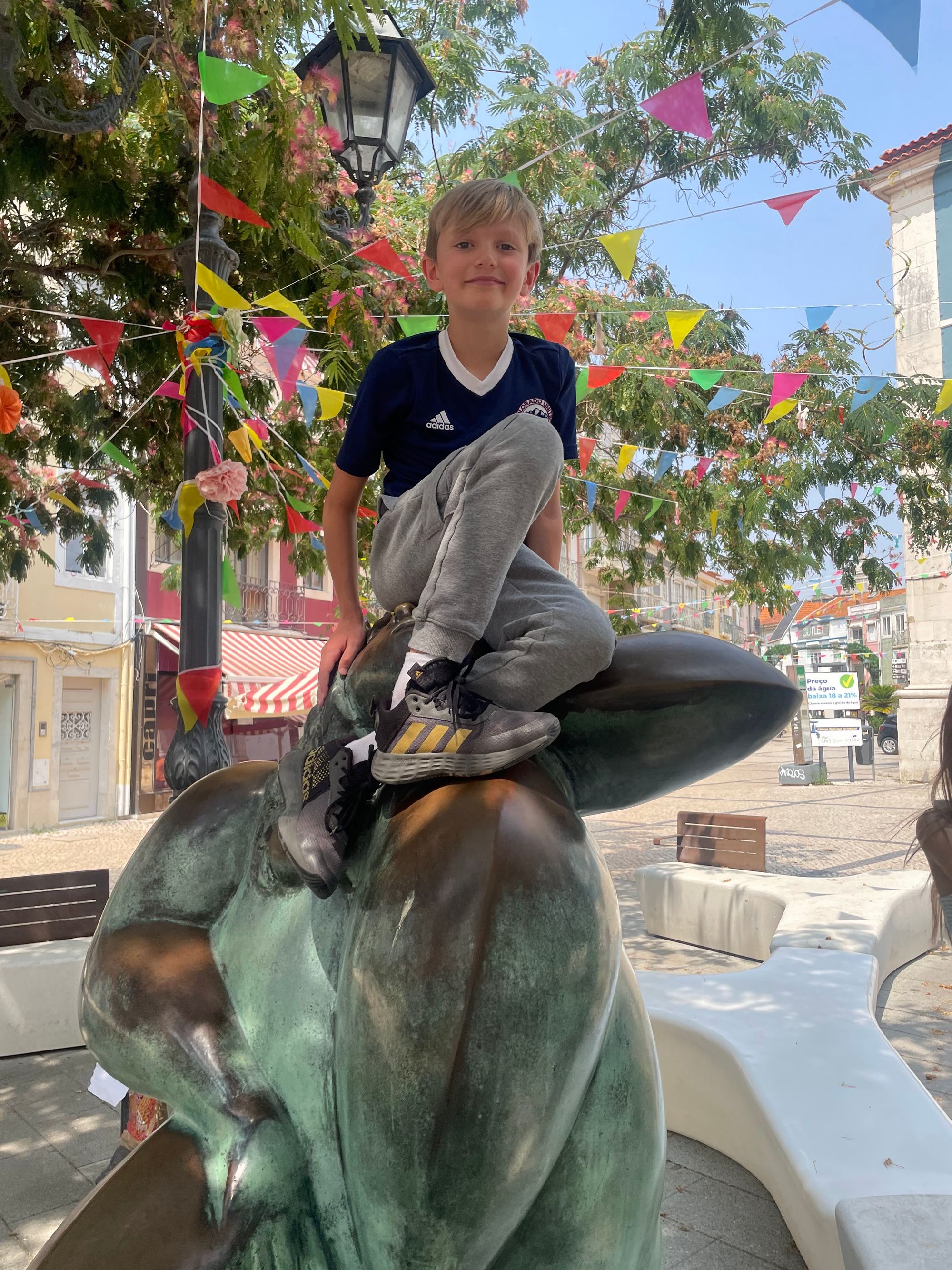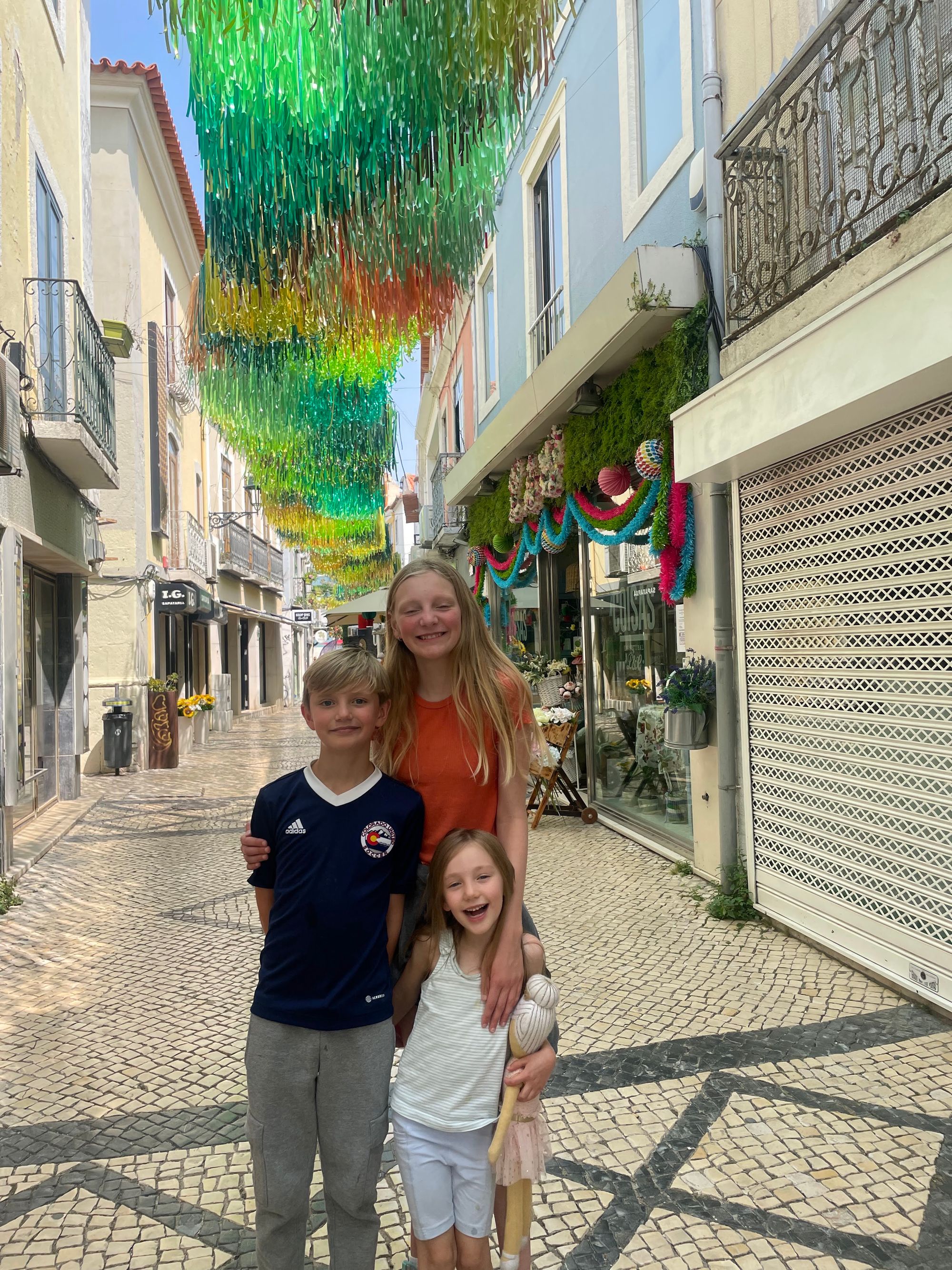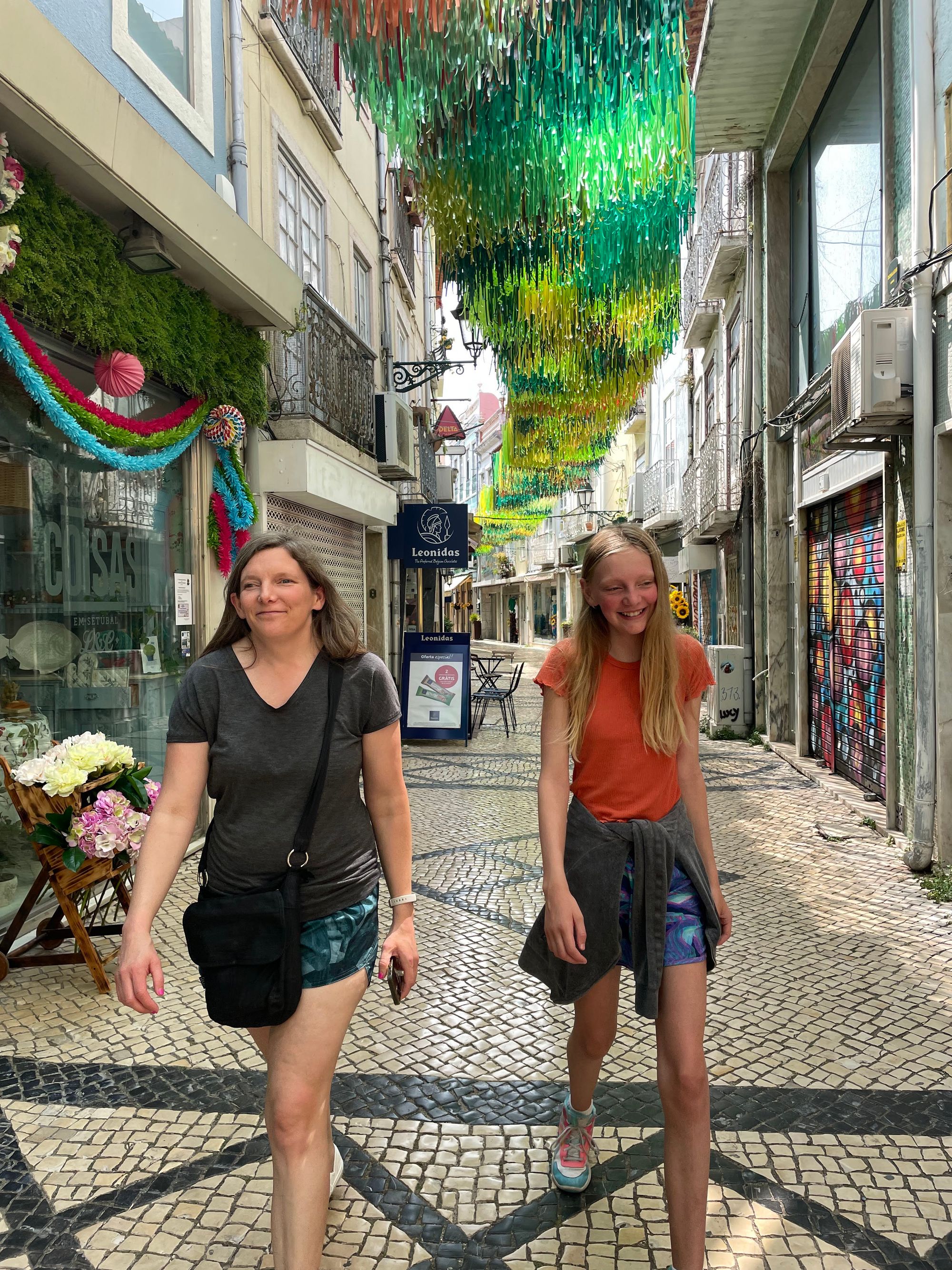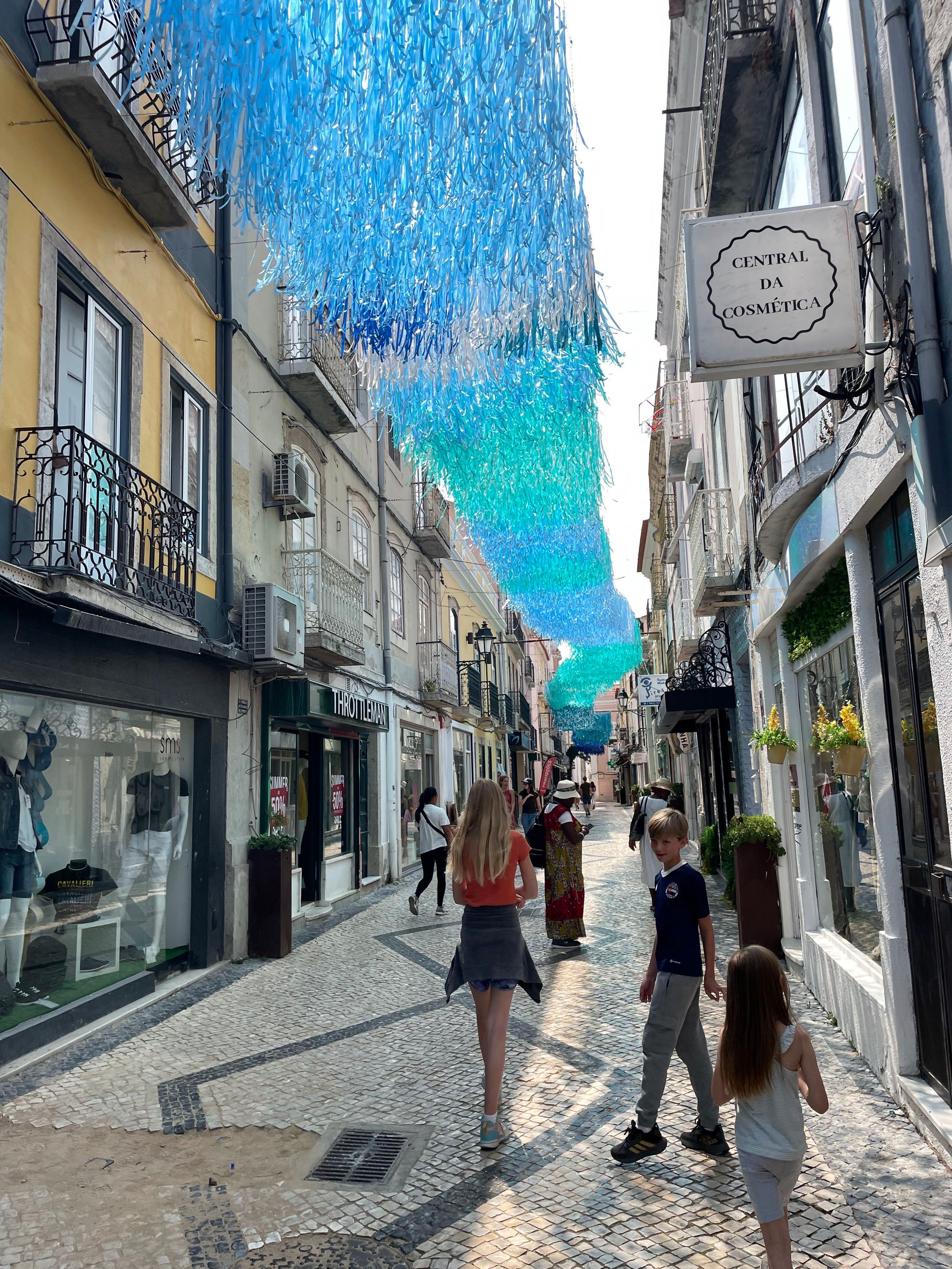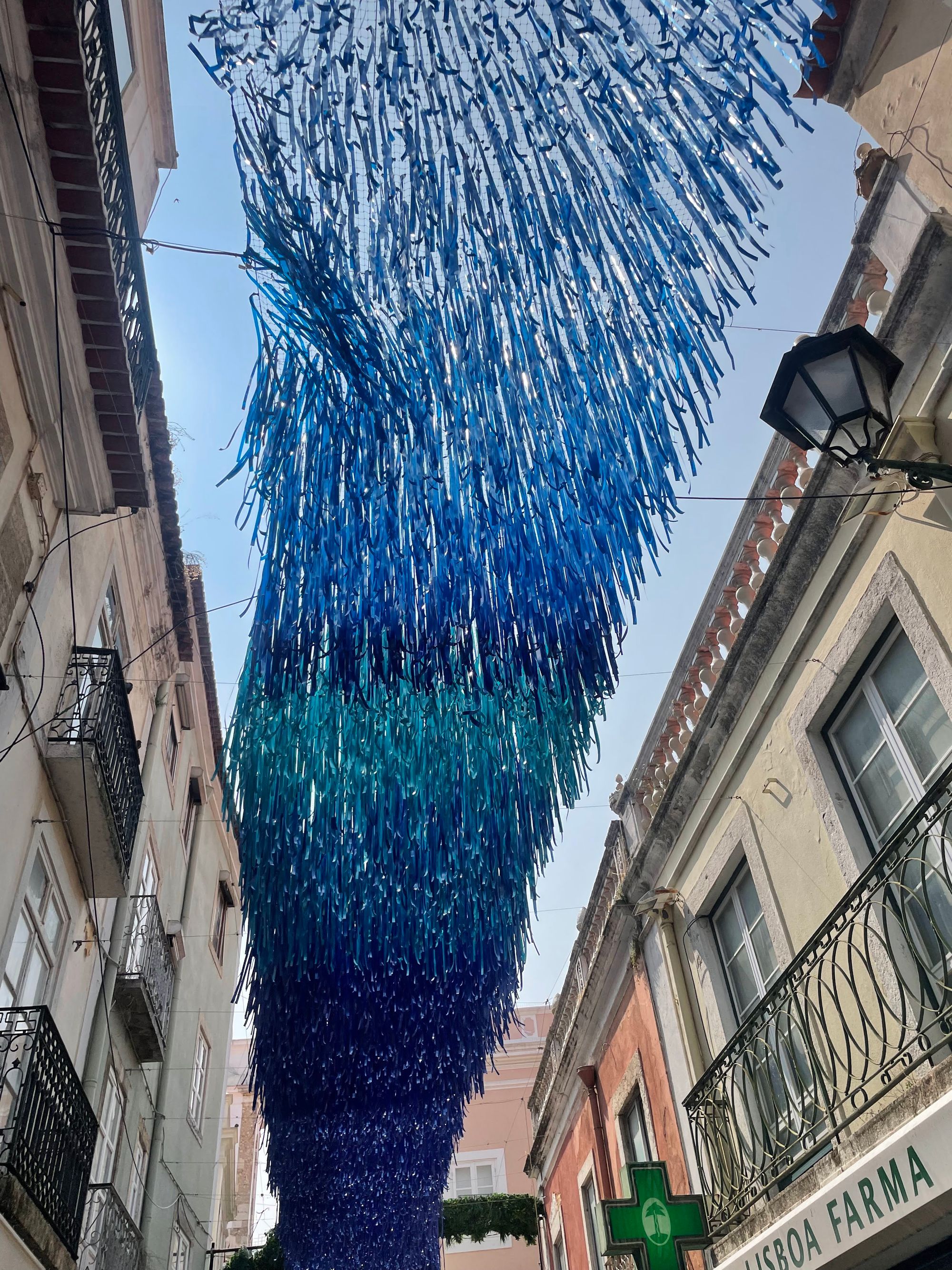 Tuesday was a lower-key day where we returned to the historic Praca de Bocage area. They commonly decorate the streets surrounding the square in one way or another during the summer months and this year doesn't disappoint. The theme appears to be streamers representing the land up one street and the ocean down another.
