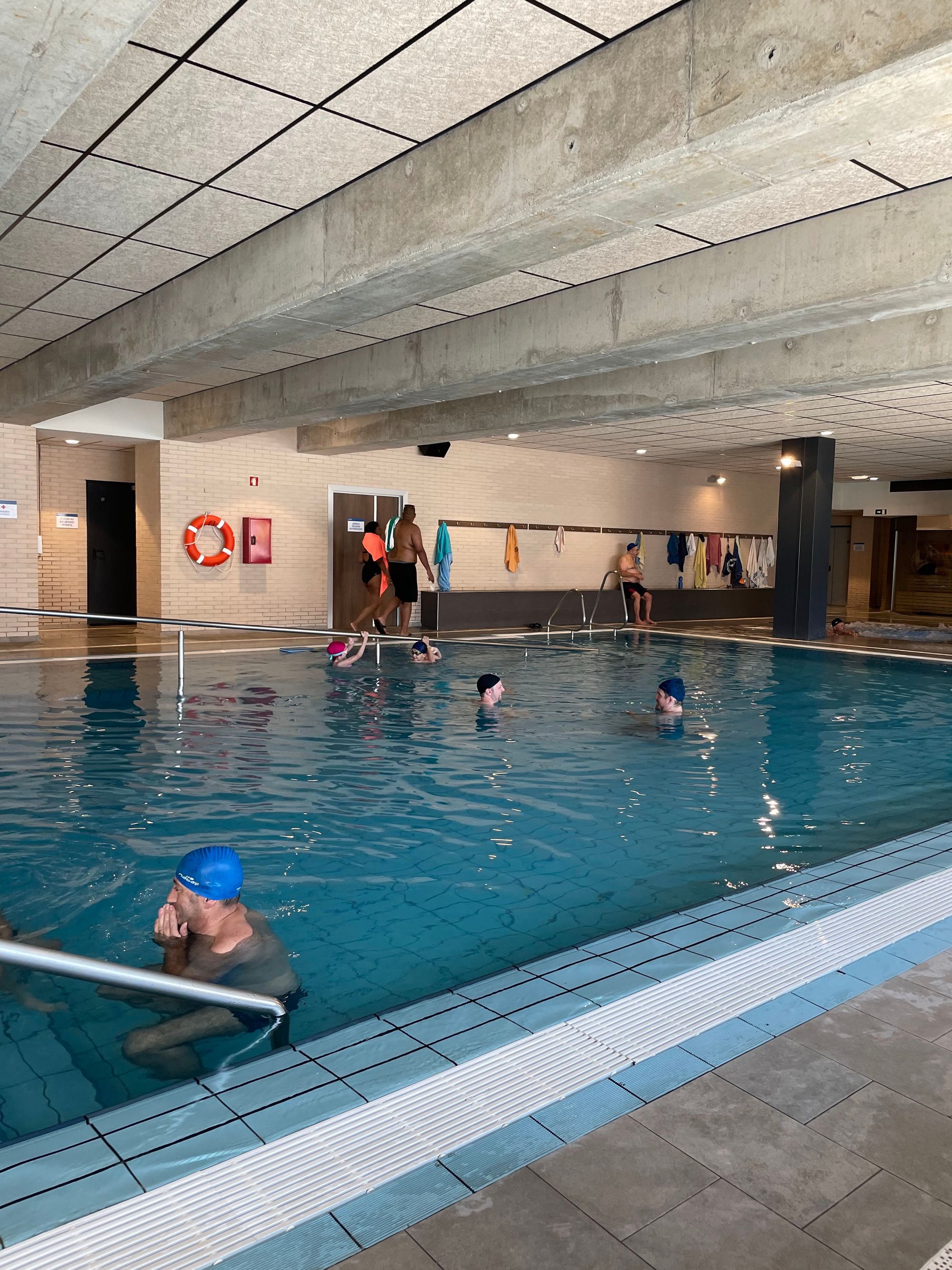 One of the idiosyncrasies of this club (Is it all over Europe?) is that they require a swim cap for everyone while in the indoor pools or hot tub. Not required in the outdoor pool though. The lifeguard (who watches the outdoor pool from the back door ~30 yards away from the water) tried to explain to me that if you wore your swim cap outside your head might get too warm 🤔️
