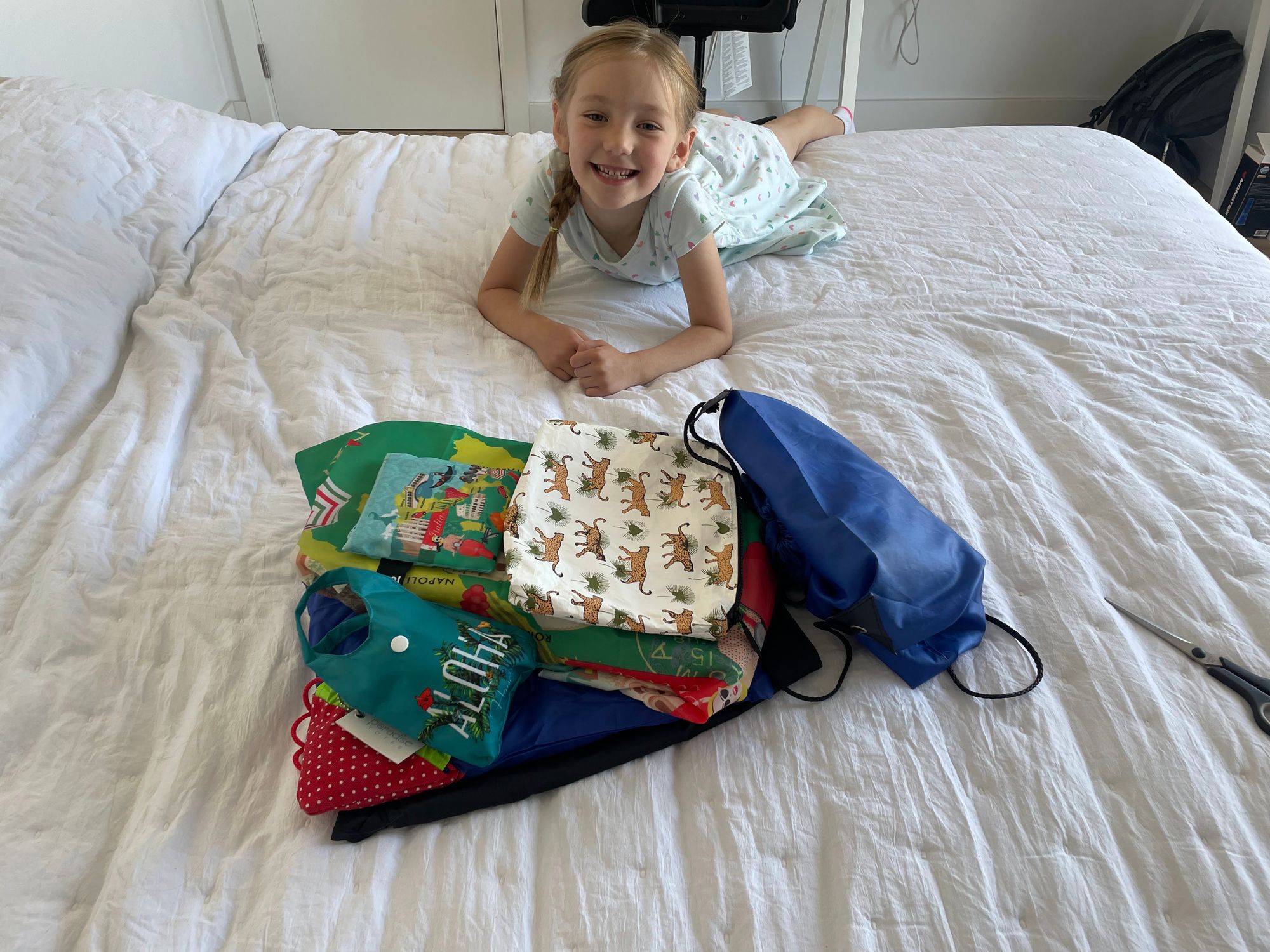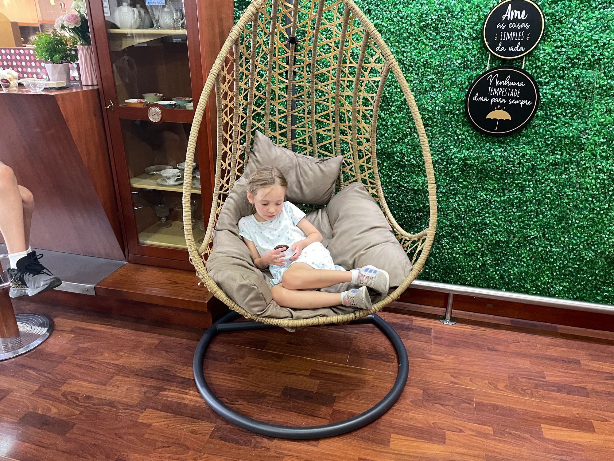 Tuesday was July 4th and Nora's birthday and we spent the morning waiting for the washer/dryer we ordered to arrive. Afterward we took Nora to Chocolate & Cia (Chocolate and Co) for a mid-afternoon treat. Then came presents! One oddity of Portugal is that you can't find wrapping paper just anywhere. The only place we can remember seeing during our time here has been on the way out of Auchan, and it wasn't for sale, it was a gift wrapping station you could use as you leave the store. In the end Erin had to get creative with some reusable bags we have around the apartment.