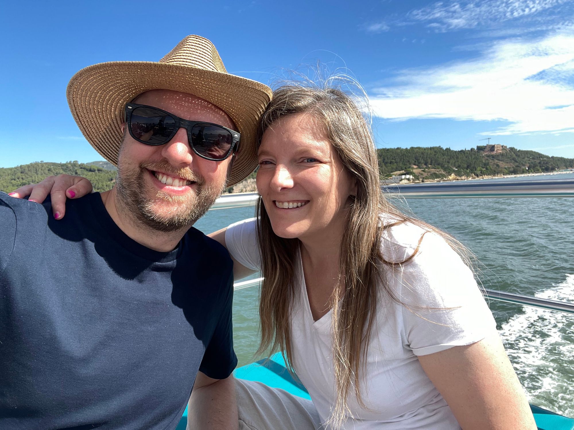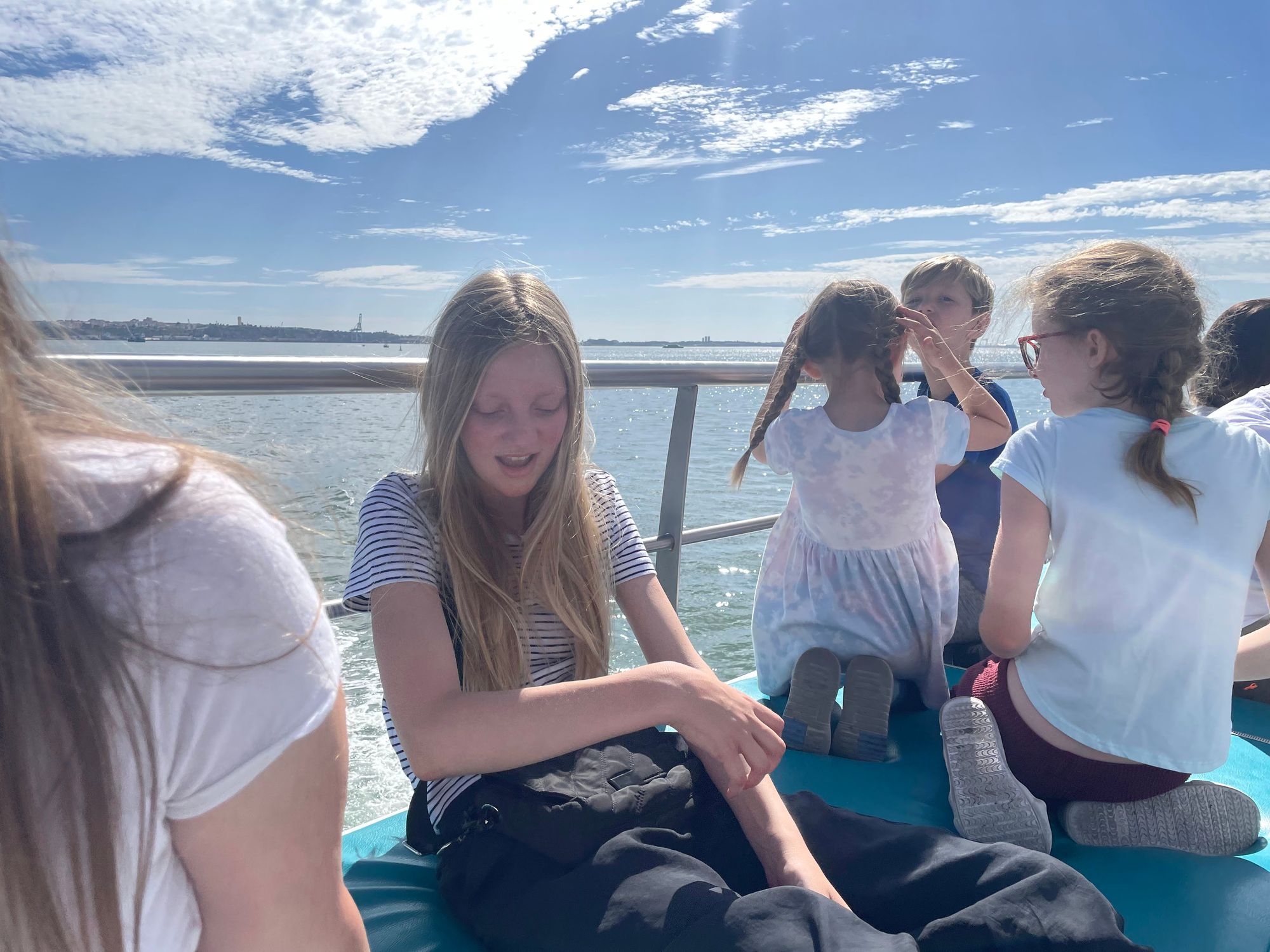 Fast forward to Wednesday where we made good on the rest of Nora's birthday plans. The family and some friends got tickets for a dolphin watching cruise in at the mouth of the River Sado. It's the body of water partially enclosed by the Setubal and Troia regions, and I was today years old when I learned this type of topology is called an "estuary". Setubal has a pod of dolphins that are stationary in the region, which is apparently very rare, occurring in a handful of places globally. The dolphins were easy to spot and we loved seeing them play.