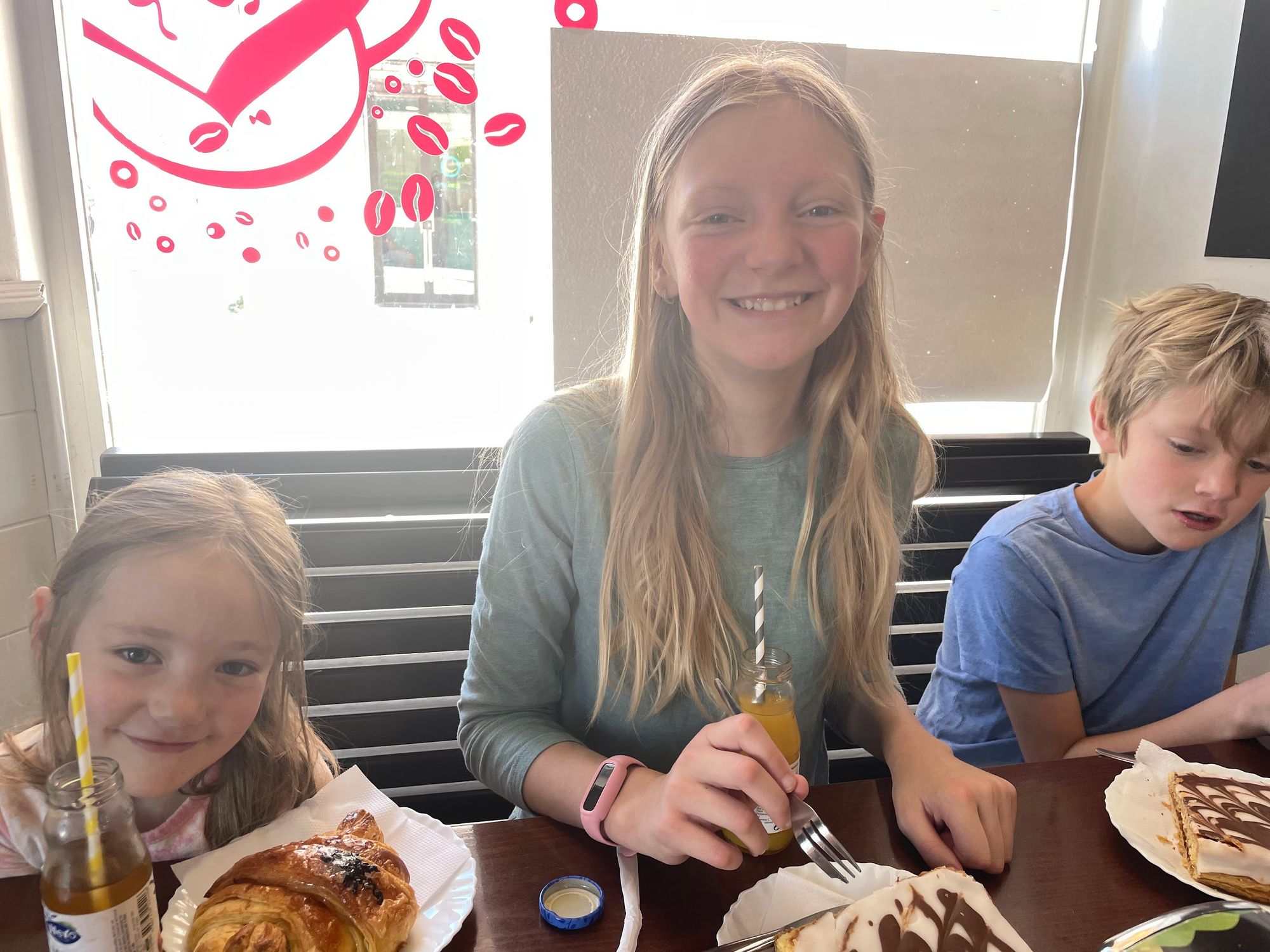 Junie: high point - making a new friend at the park, low point - long passport line, something new - we have a fruit stand (and mini mart) right next door!